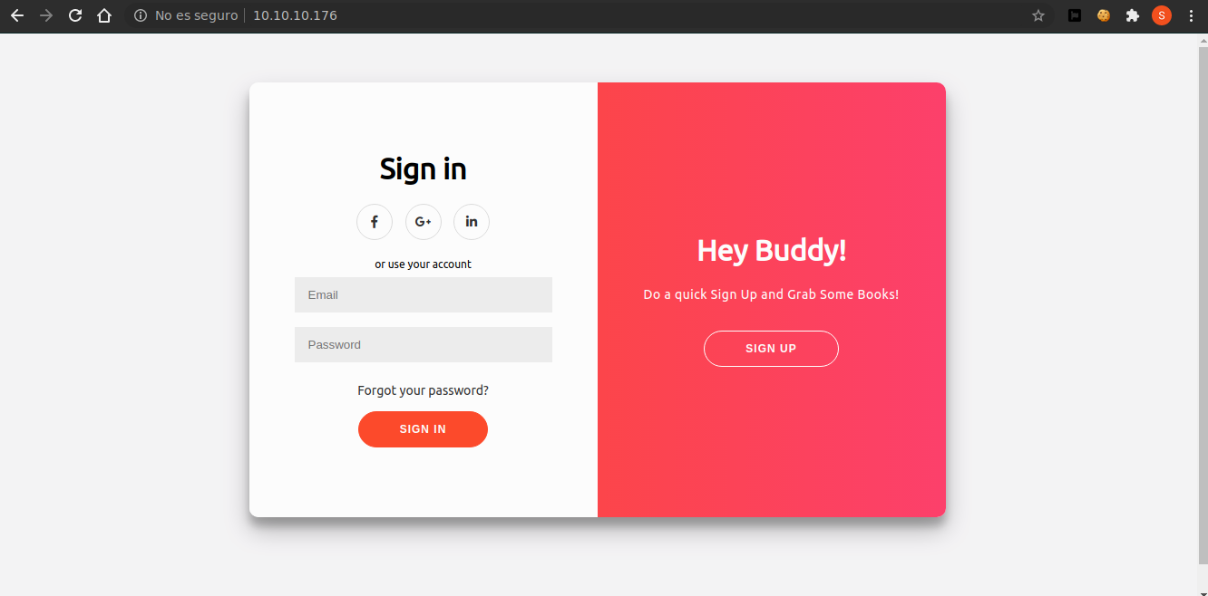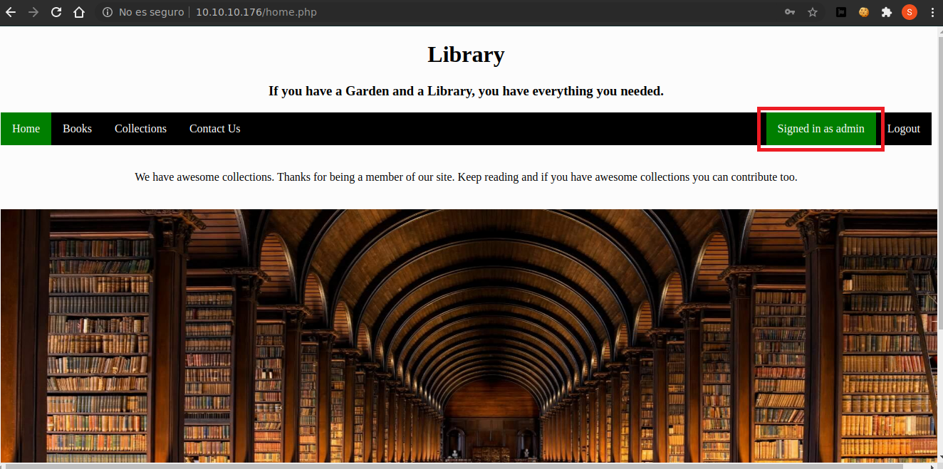 Intenté entrar con la combinación admin:admin entre otras pero ninguna dió resultado. Ya que hay una opción para ello, me registré y accedí a la biblioteca.