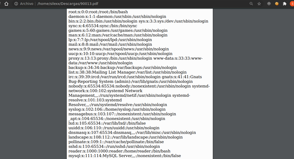 Como se puede observar, tanto el usuario reader como root tienen una bash asignada y si recordamos, el servicio SSH estaba activo en la máquina. Probamos a obtener la key ssh con el mismo método.